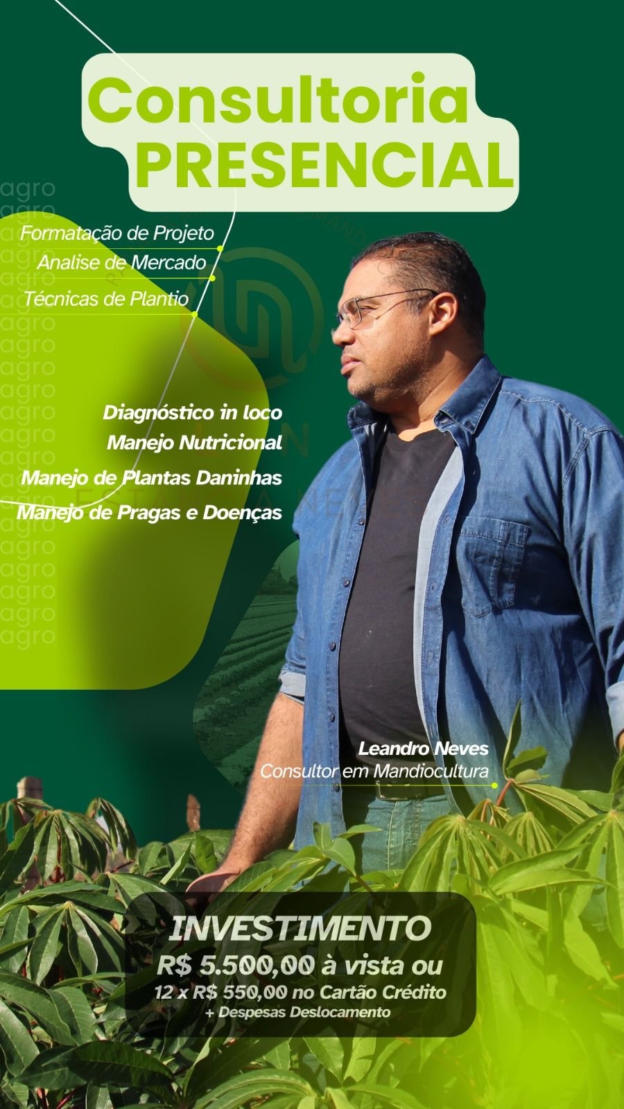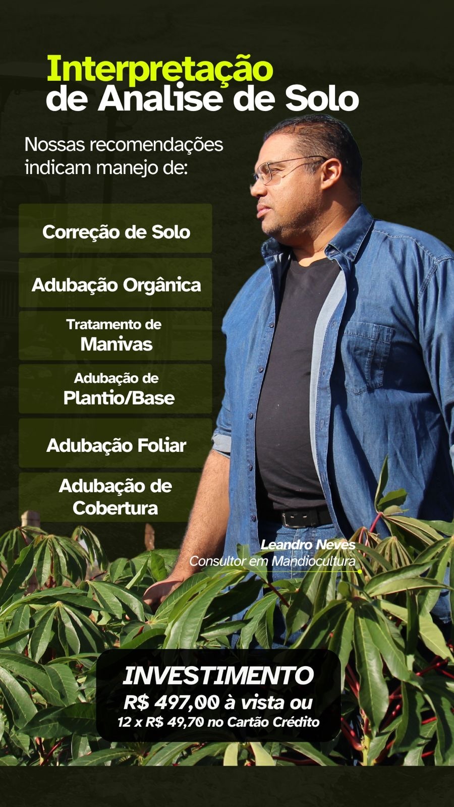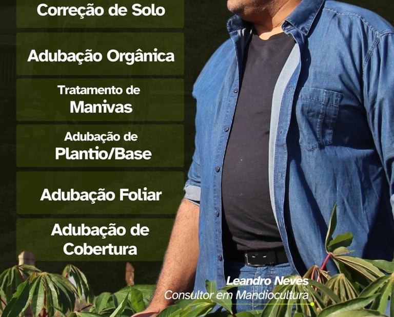 Leandro da Silva Pereira Neves, Consultor especializado em Mandiocultura e responsável pela Estância Neves, referência no Brasil em produção de manivas e consultoria para alta produtividade. Com experiência prática em diferentes solos e regiões, já ajudou centenas de produtores a transformarem suas lavouras em negócios lucrativos.